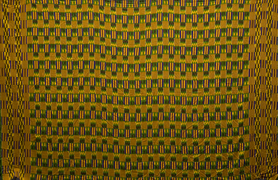 “Family Ties” Abusua Ye Dom- Man’s wrapper, wall hanging. 24 strips, woven in Bonwire, Asante, Ghana circa 1920. 96”x120”