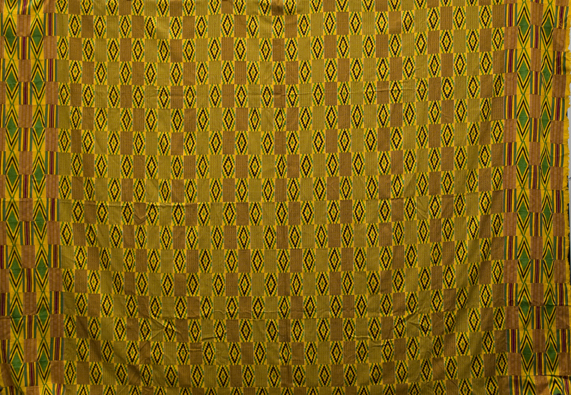.“Gold Dust” Sika Futuro-Man’s piece, wall hanging, modern queen bedspread. 17 strips woven in Womoo, Asante, Ghana in 1997. 85”x120”.