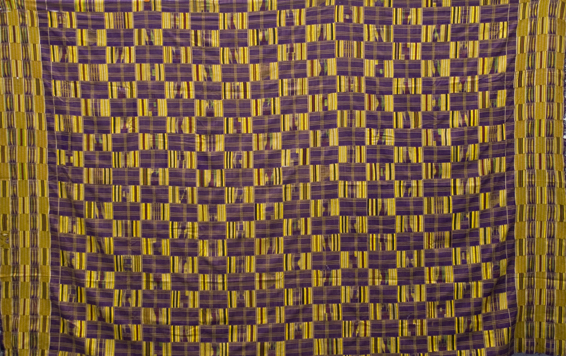 “A Clever Old Woman” Aberewa Ben- Man’s piece, wall hanging. 24 strips woven in the Kumasi Area, circa 1915. 96”x120